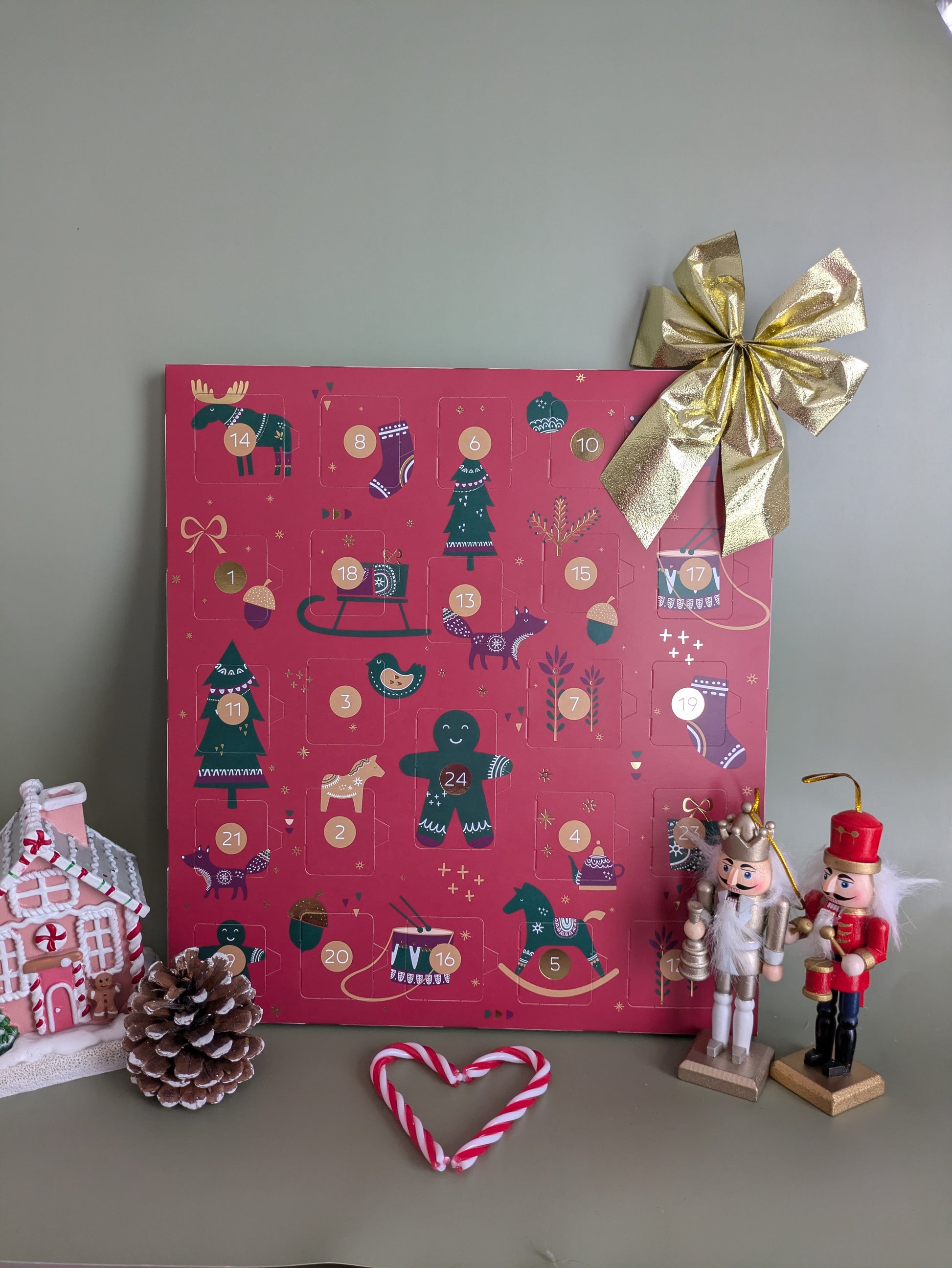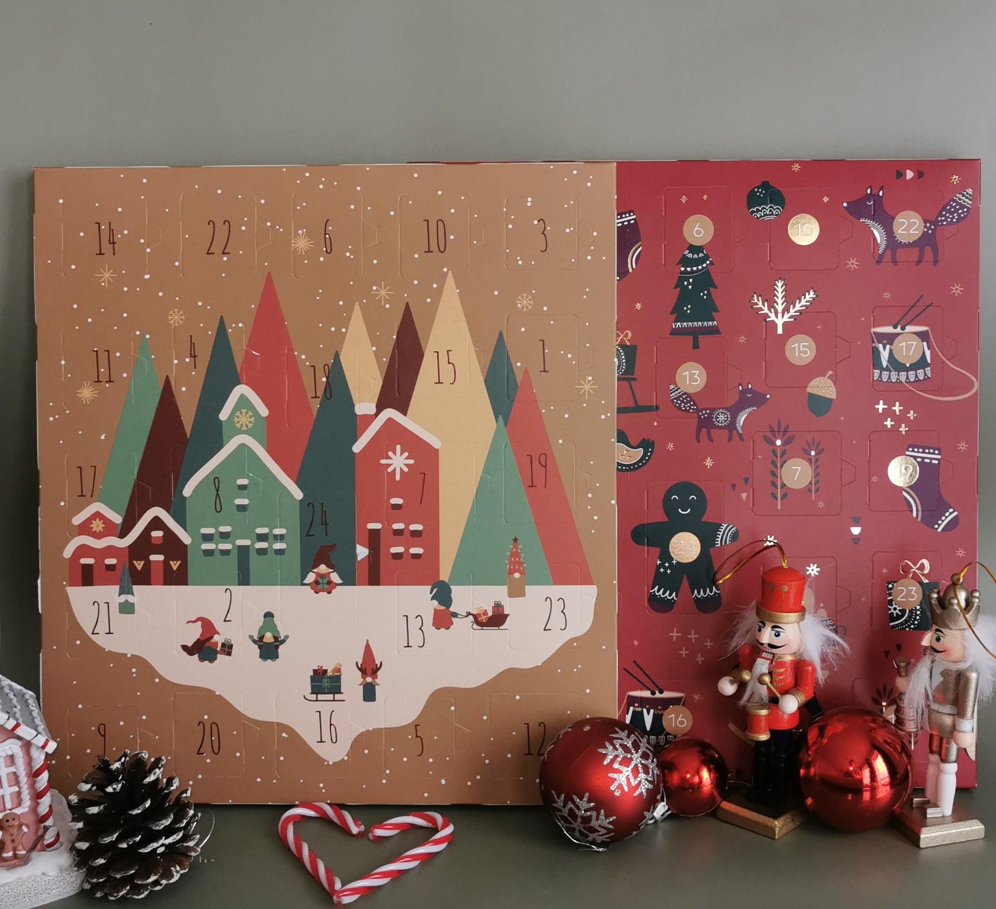 Un calendrier composé de 24 chocolats variés : chocolat amande, chocolat noisette, chocolat caramel et chocolat blanc à l’amande. L’attente de Noël n’a jamais été aussi gourmande.