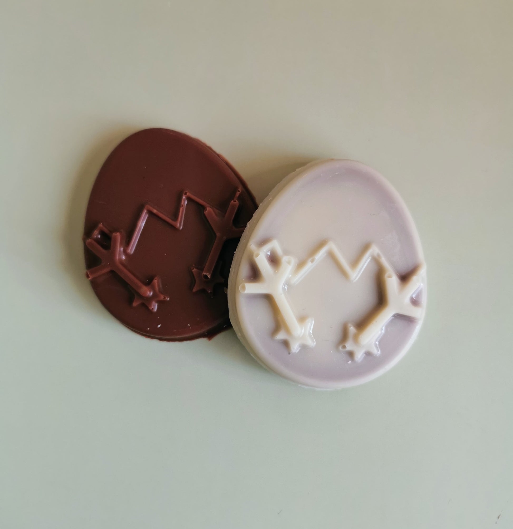 Une mini tablette en forme d’œuf qui allie finesse et intensité avec un praliné noisettes croustillant.